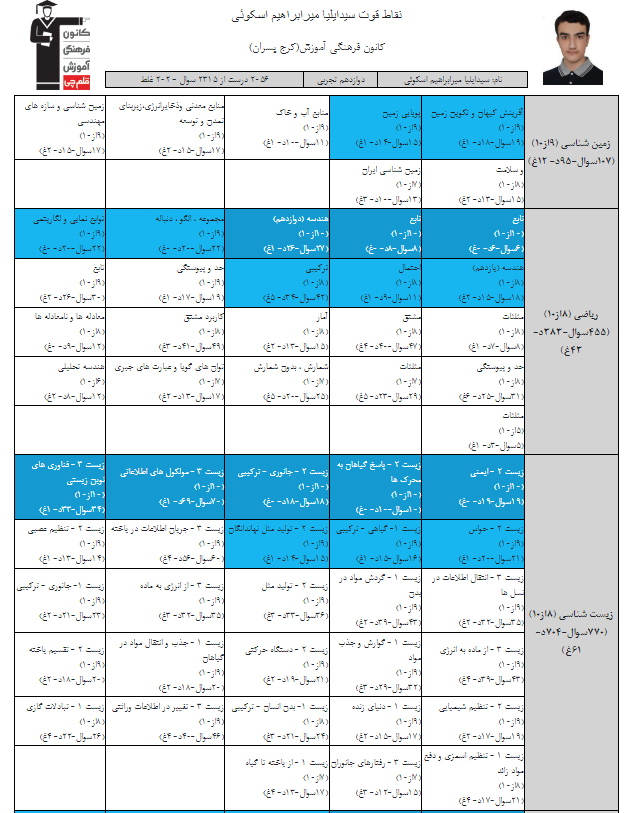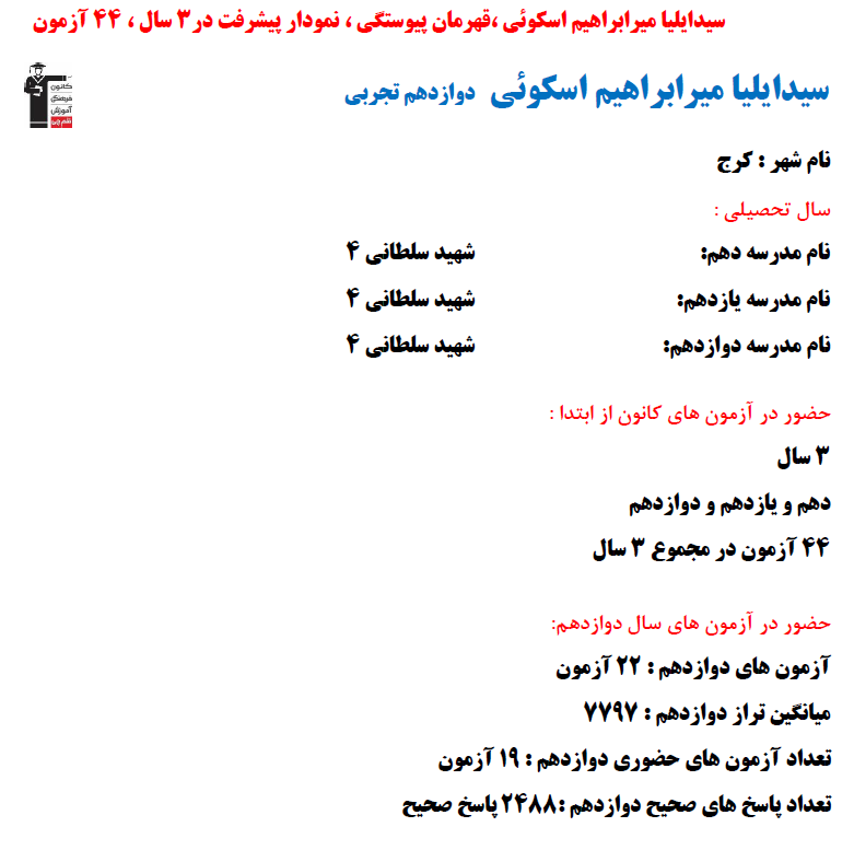 در ادامه میتوانید عملکرد درسی سیدایلیا میرابراهیم اسکوئی را در کانون مشاهده کنید.