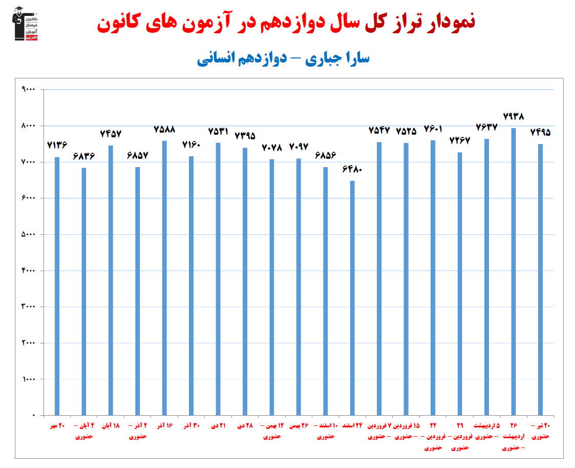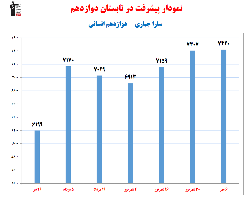 نمودار پیشرفت میانگین تراز در پایههای مختلف، نمودار تراز کل، عملکرد آزمونهای سال دوازدهم و شروع از تابستان و تراز آزمون های تابستان، کارنامههای مبحثی در نمودارها و تصاویر زیر قابل مشاهده است.
