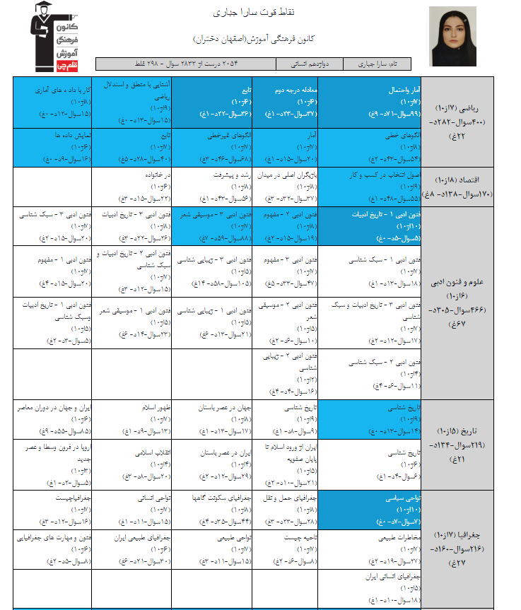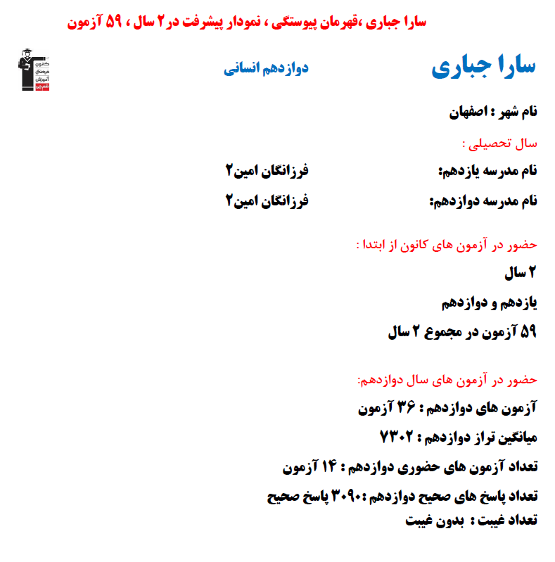 در ادامه میتوانید عملکرد درسی سارا جباری را در کانون مشاهده کنید.