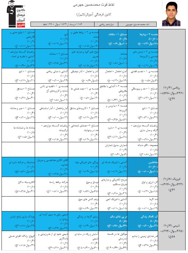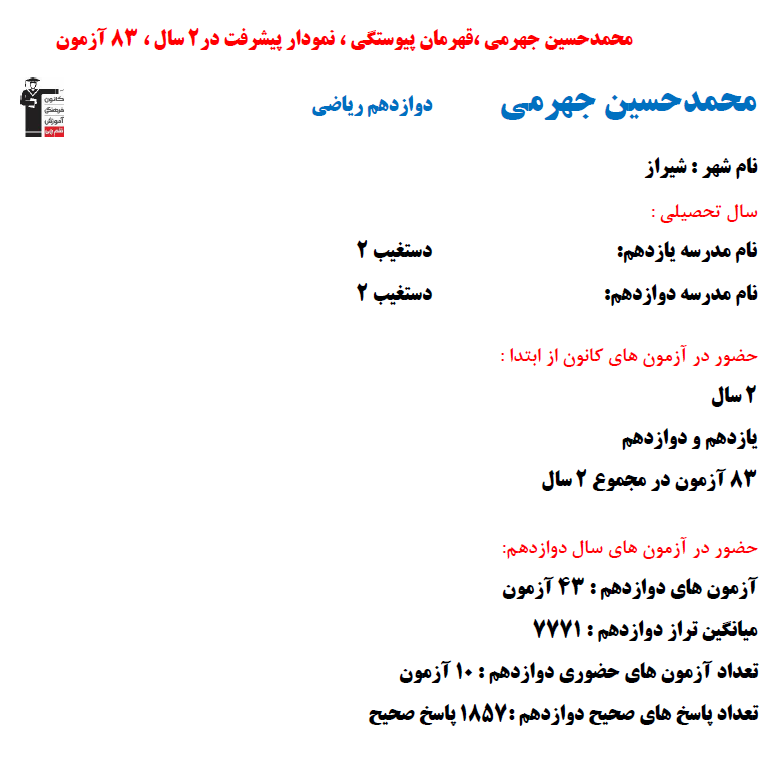 در ادامه میتوانید عملکرد درسی محمدحسین جهرمی را در کانون مشاهده کنید.