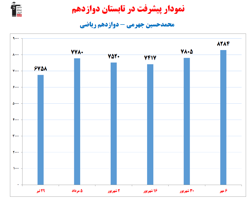 نمودار پیشرفت میانگین تراز در پایههای مختلف، نمودار تراز کل، عملکرد آزمونهای سال دوازدهم و شروع از تابستان و تراز آزمون های تابستان، کارنامههای مبحثی در نمودارها و تصاویر زیر قابل مشاهده است.