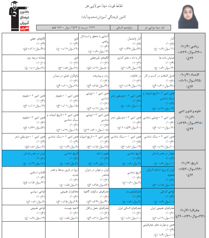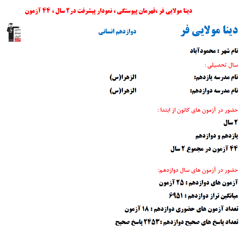 در ادامه میتوانید عملکرد درسی دینا مولایی فر را در کانون مشاهده کنید.