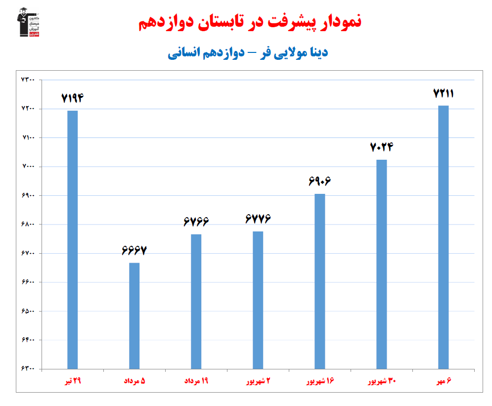نمودار پیشرفت میانگین تراز در پایههای مختلف، نمودار تراز کل، عملکرد آزمونهای سال دوازدهم و شروع از تابستان و تراز آزمون های تابستان، کارنامههای مبحثی در نمودارها و تصاویر زیر قابل مشاهده است.