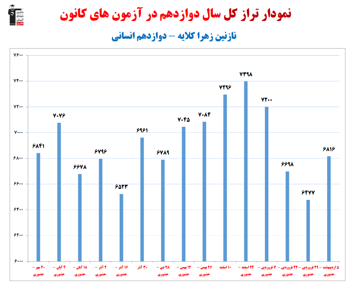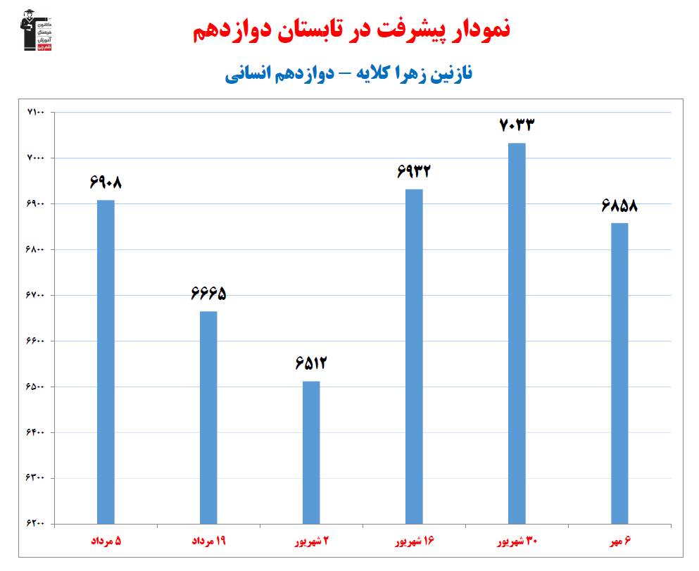 نمودار پیشرفت میانگین تراز در پایههای مختلف، نمودار تراز کل، عملکرد آزمونهای سال دوازدهم و شروع از تابستان و تراز آزمون های تابستان، کارنامههای مبحثی در نمودارها و تصاویر زیر قابل مشاهده است.