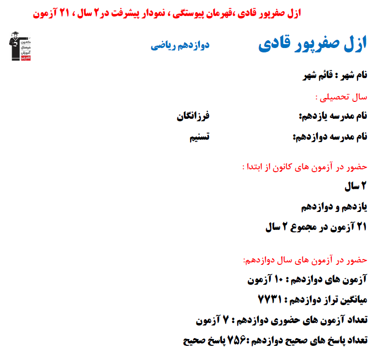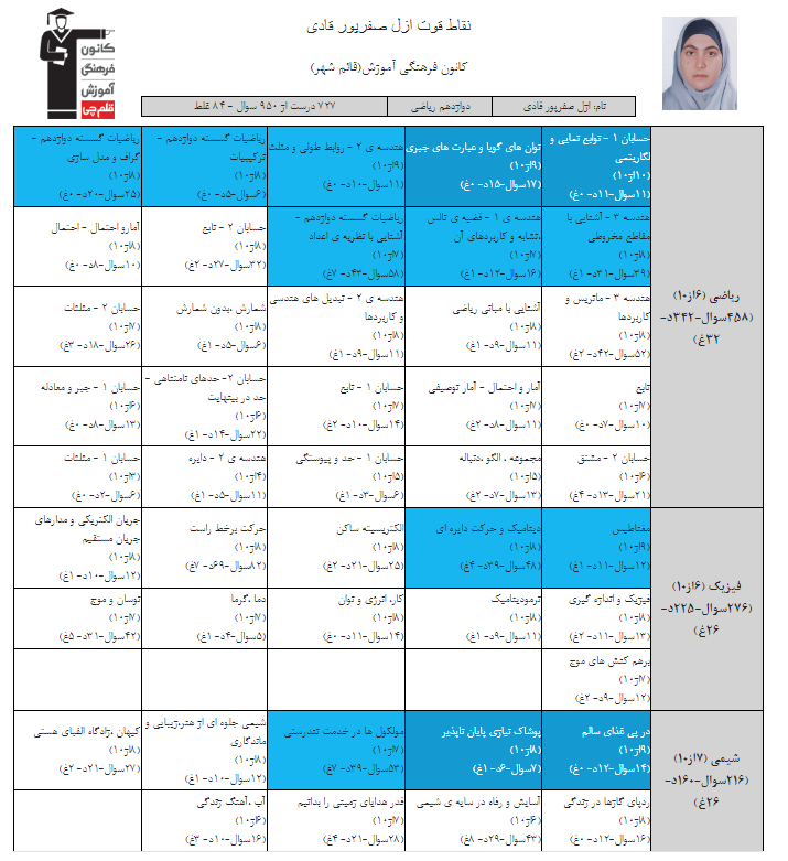 در ادامه میتوانید عملکرد درسی ازل صفرپور قادری را در کانون مشاهده کنید.