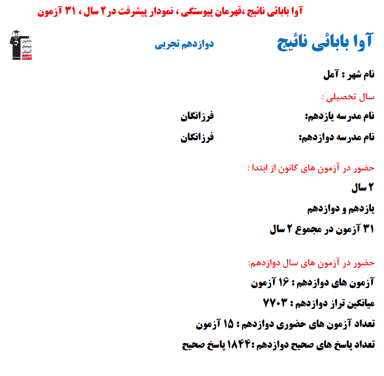 در ادامه میتوانید عملکرد درسی آوابابائی نائیج را در کانون مشاهده کنید.