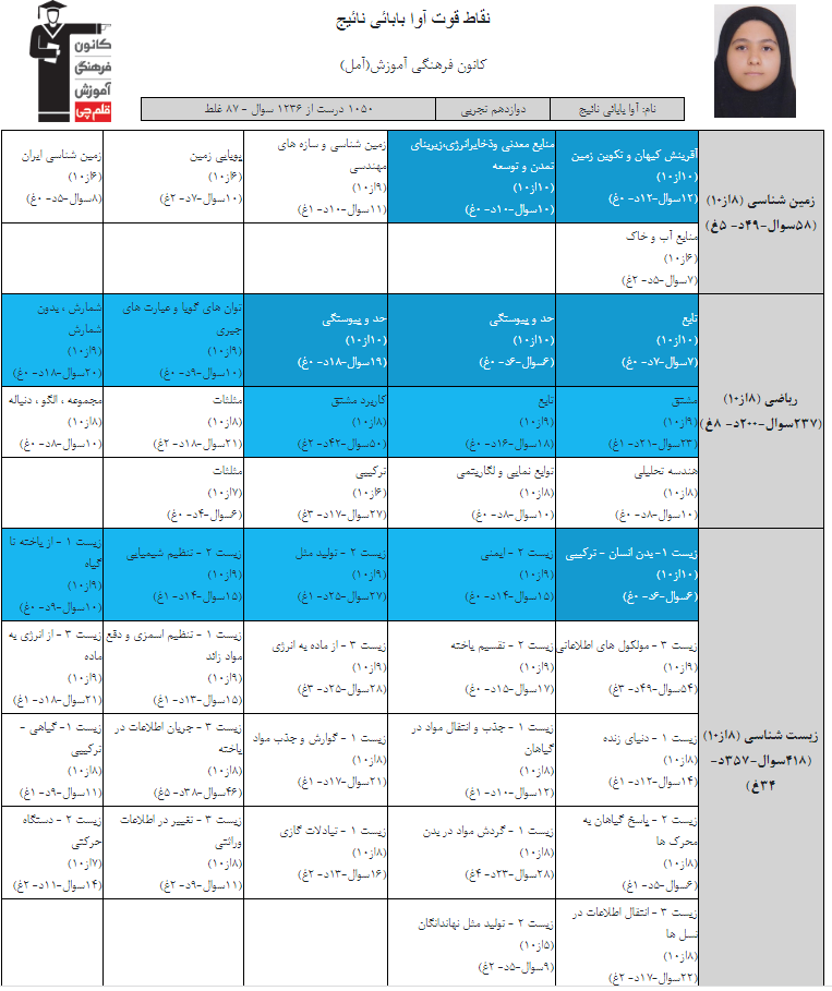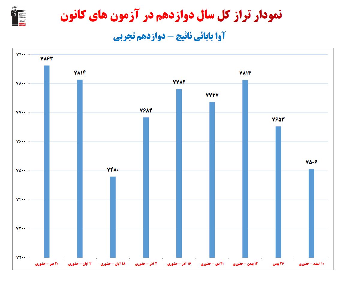 نمودار پیشرفت میانگین تراز در پایههای مختلف، نمودار تراز کل، عملکرد آزمونهای سال دوازدهم و شروع از تابستان و تراز آزمون های تابستان، کارنامههای مبحثی در نمودارها و تصاویر زیر قابل مشاهده است.
