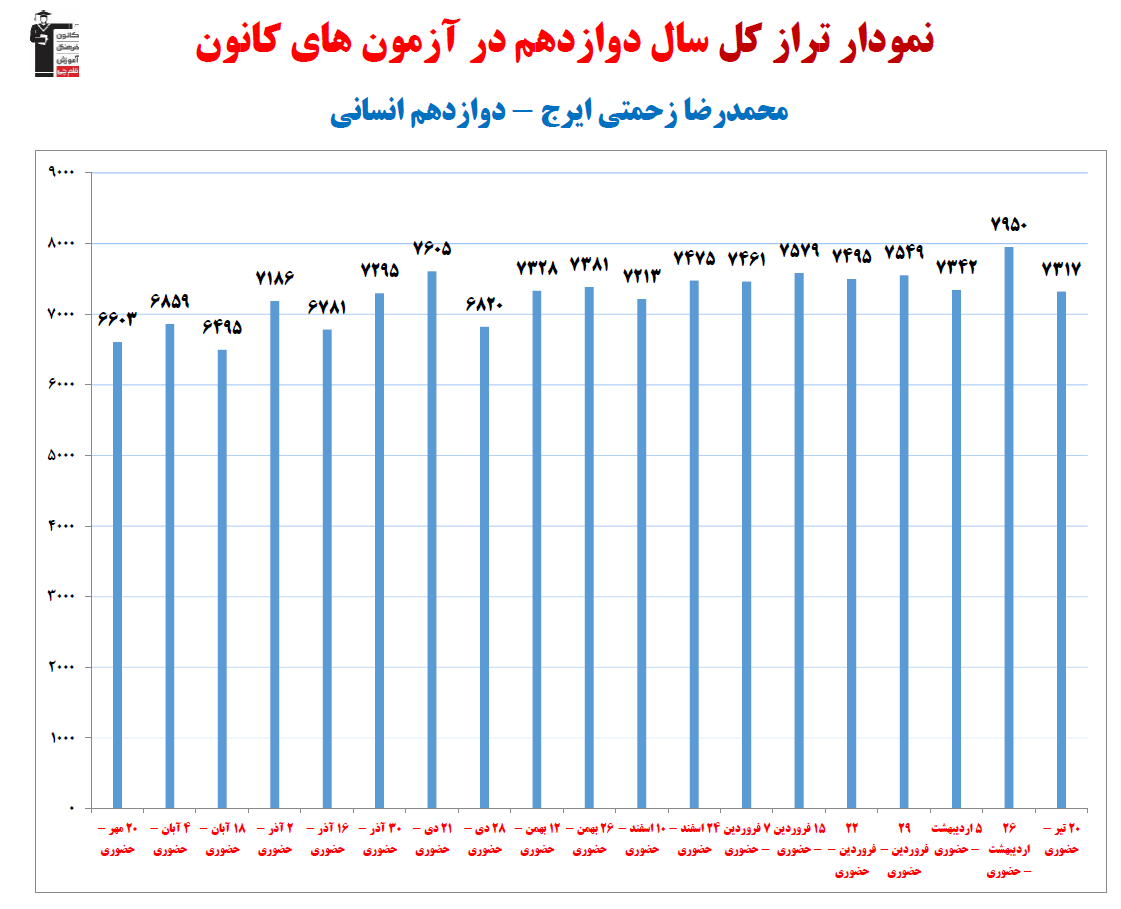 نمودار پیشرفت میانگین تراز در پایههای مختلف، نمودار تراز کل، عملکرد آزمونهای سال دوازدهم و شروع از تابستان و تراز آزمون های تابستان، کارنامههای مبحثی در نمودارها و تصاویر زیر قابل مشاهده است.