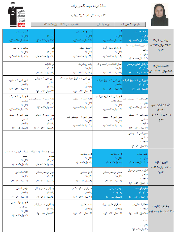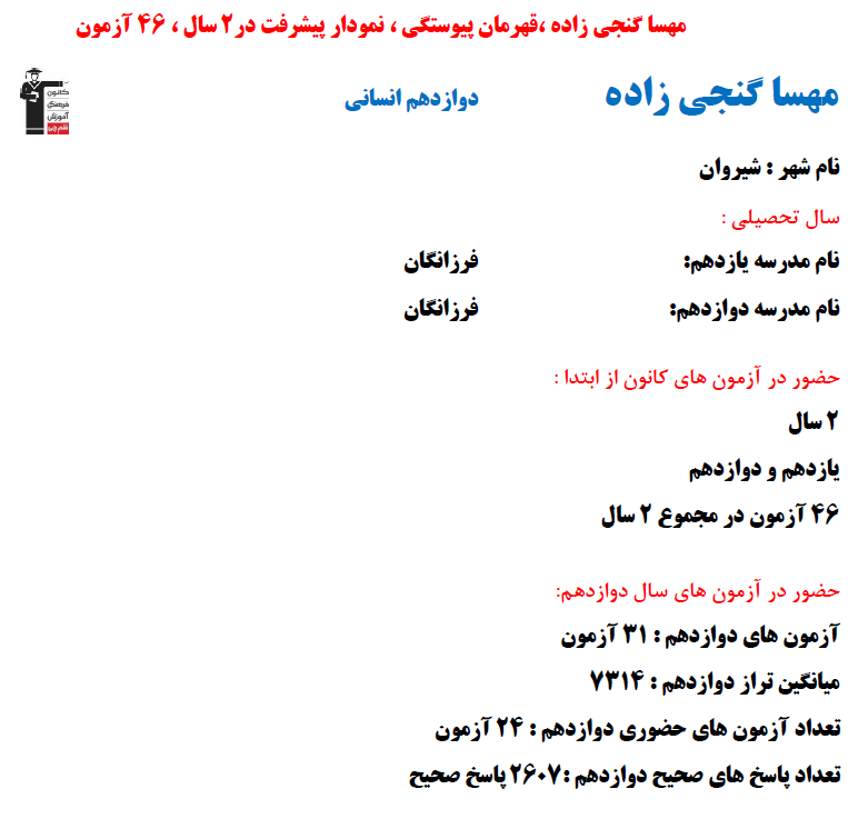 در ادامه میتوانید عملکرد درسی مهسا گنجی زاده را در کانون مشاهده کنید.