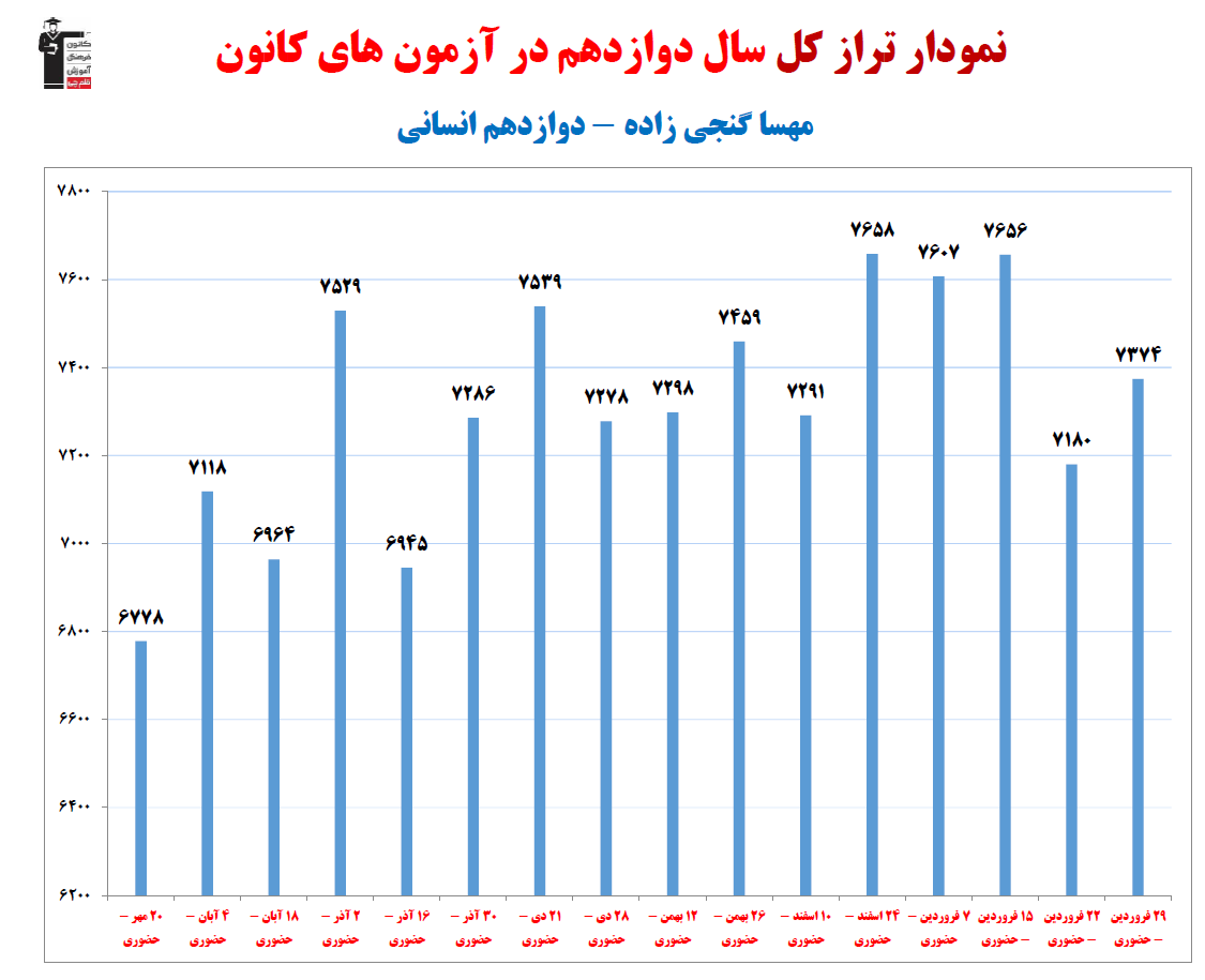 نمودار پیشرفت میانگین تراز در پایههای مختلف، نمودار تراز کل، عملکرد آزمونهای سال دوازدهم و شروع از تابستان و تراز آزمون های تابستان، کارنامههای مبحثی در نمودارها و تصاویر زیر قابل مشاهده است.