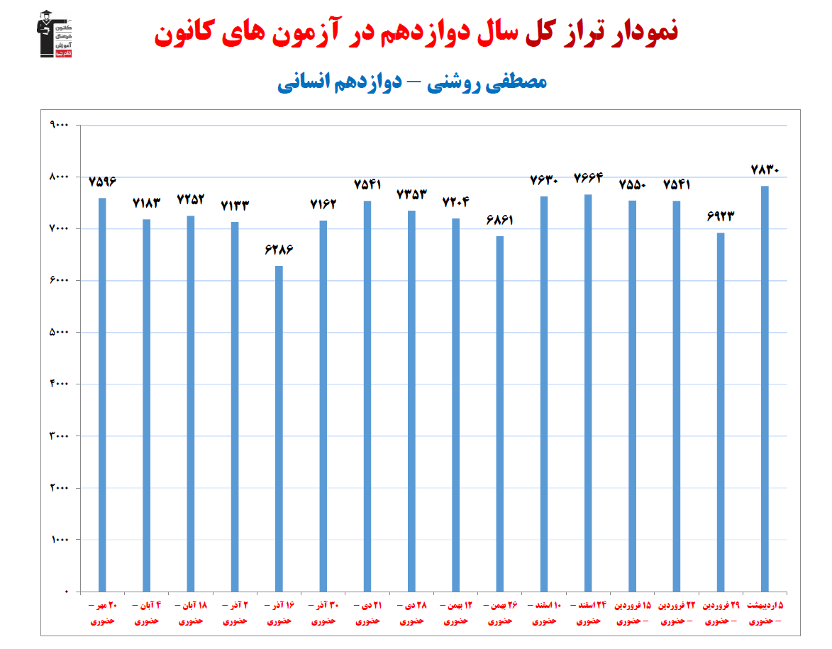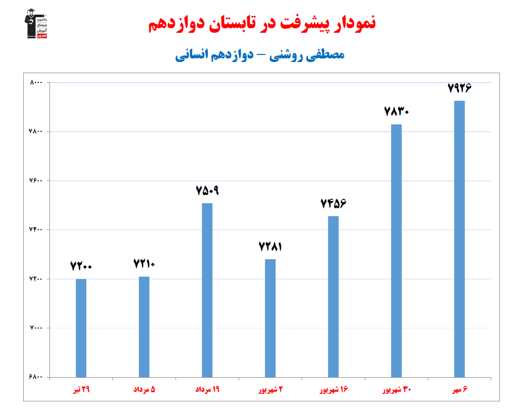 نمودار پیشرفت میانگین تراز در پایههای مختلف، نمودار تراز کل، عملکرد آزمونهای سال دوازدهم و شروع از تابستان و تراز آزمون های تابستان، کارنامههای مبحثی در نمودارها و تصاویر زیر قابل مشاهده است.