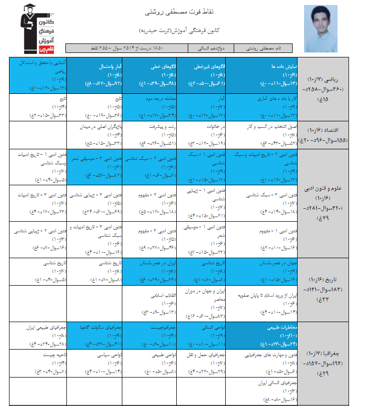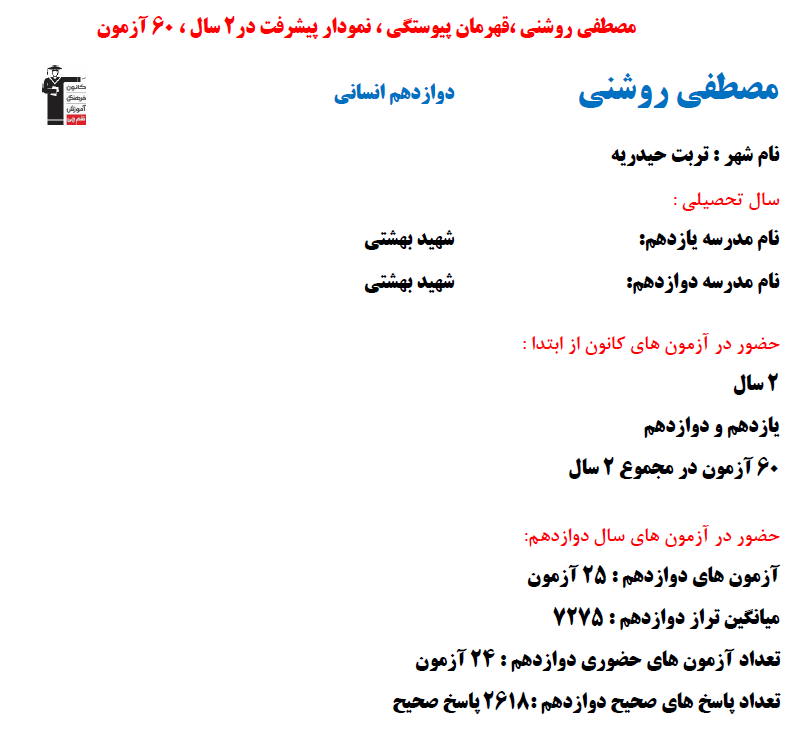در ادامه میتوانید عملکرد درسی مصطفی روشنی را در کانون مشاهده کنید.