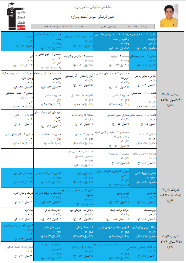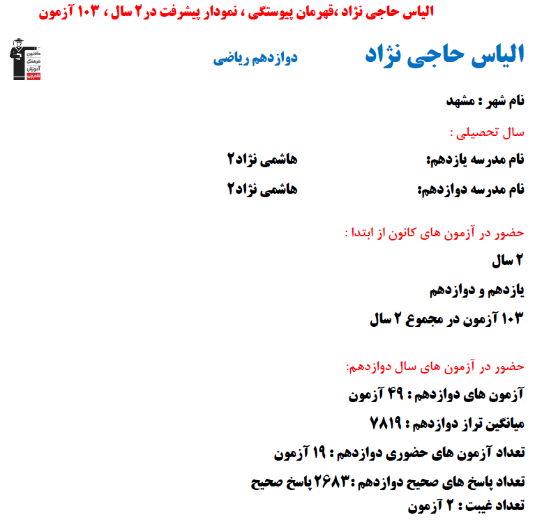 در ادامه میتوانید عملکرد درسی الیاس حاجی نژاد را در کانون مشاهده کنید.