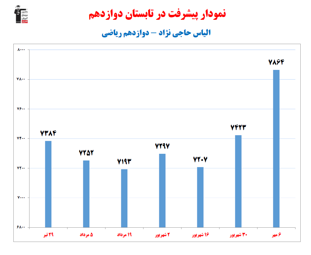 نمودار پیشرفت میانگین تراز در پایههای مختلف، نمودار تراز کل، عملکرد آزمونهای سال دوازدهم و شروع از تابستان و تراز آزمون های تابستان، کارنامههای مبحثی در نمودارها و تصاویر زیر قابل مشاهده است.