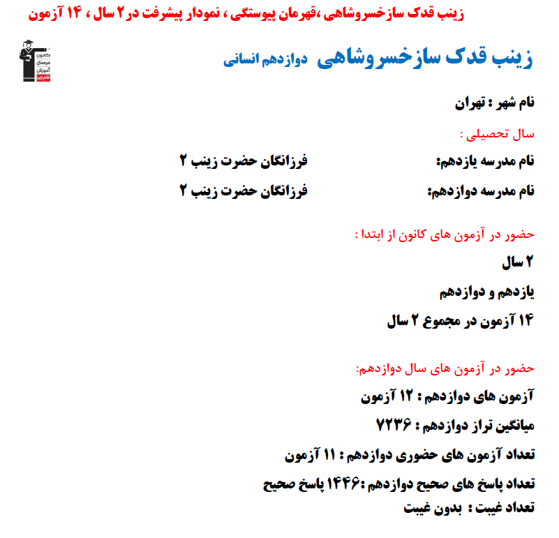 در ادامه میتوانید عملکرد درسی زینب قدکساز را در کانون مشاهده کنید.