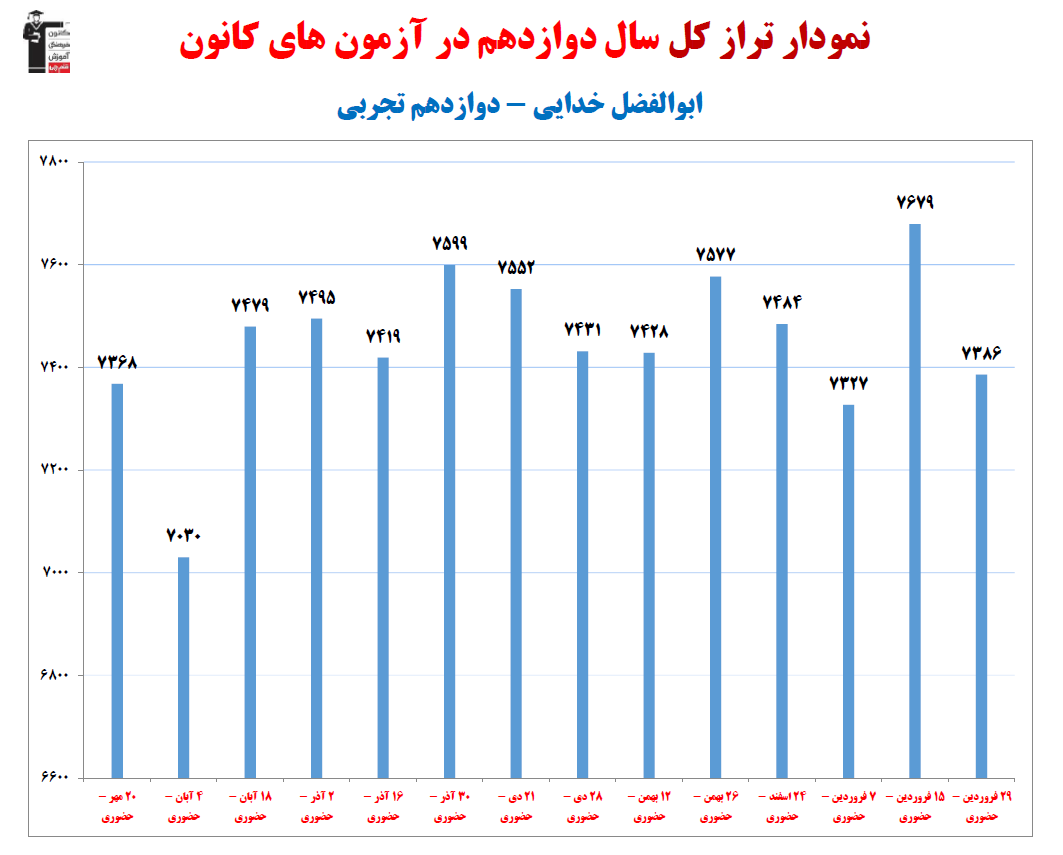 در ادامه میتوانید عملکرد درسی ابوالفضل خدايي را در کانون مشاهده کنید.نمودار پیشرفت میانگین تراز در پایههای مختلف، نمودار تراز کل، عملکرد آزمونهای سال دوازدهم و کارنامههای مبحثی در نمودارها و تصاویر زیر قابل مشاهده است.
