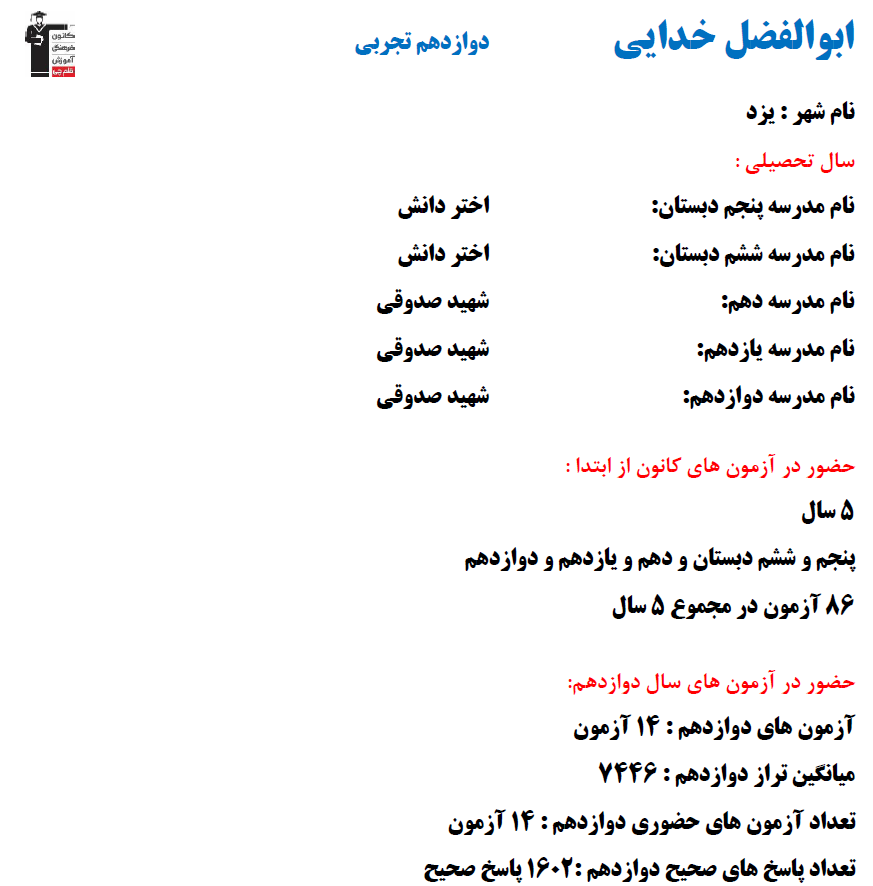 با برترهای دوازدهم تجربی ۱۴۰۴ آشنا شوید: