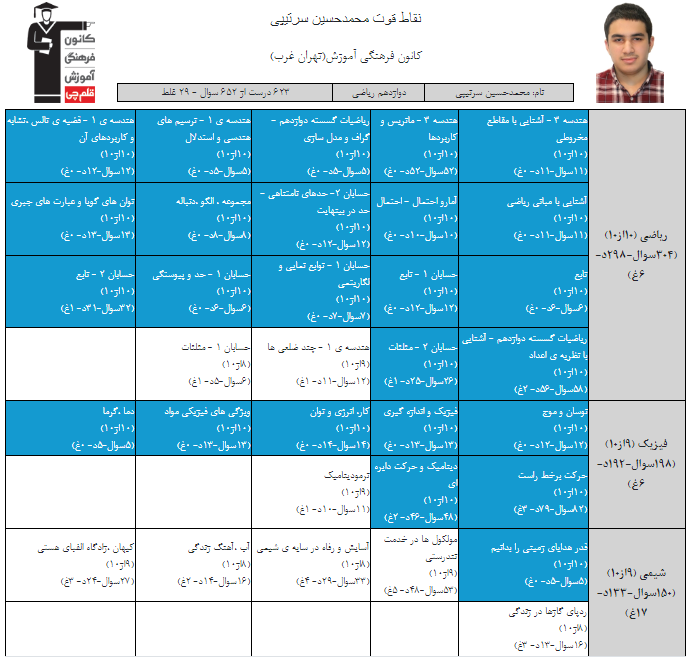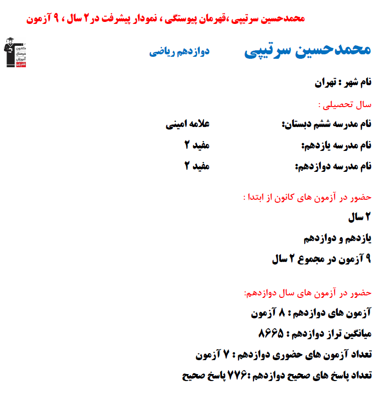 در ادامه میتوانید عملکرد درسی محمدحسین سرتیپی را در کانون مشاهده کنید.