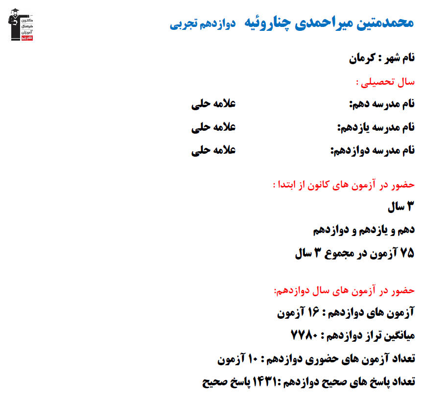 با برترهای دوازدهم تجربی ۱۴۰۴ آشنا شوید: