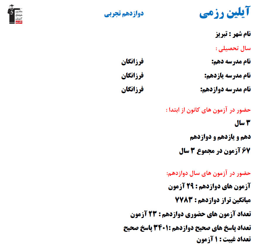 با برترهای دوازدهم تجربی ۱۴۰۴ آشنا شوید: