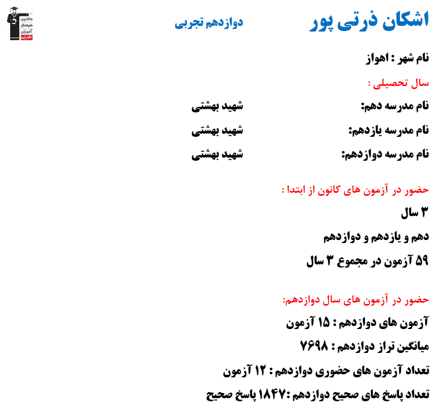 با برترهای دوازدهم تجربی ۱۴۰۴ آشنا شوید: