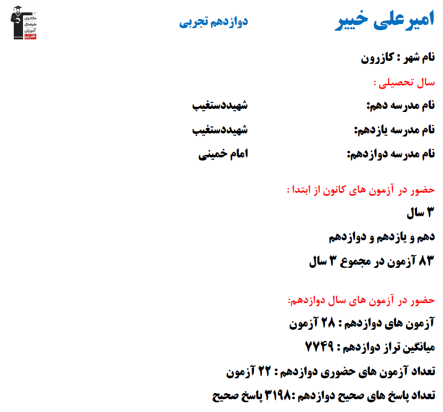 با برترهای دوازدهم تجربی ۱۴۰۴ آشنا شوید: