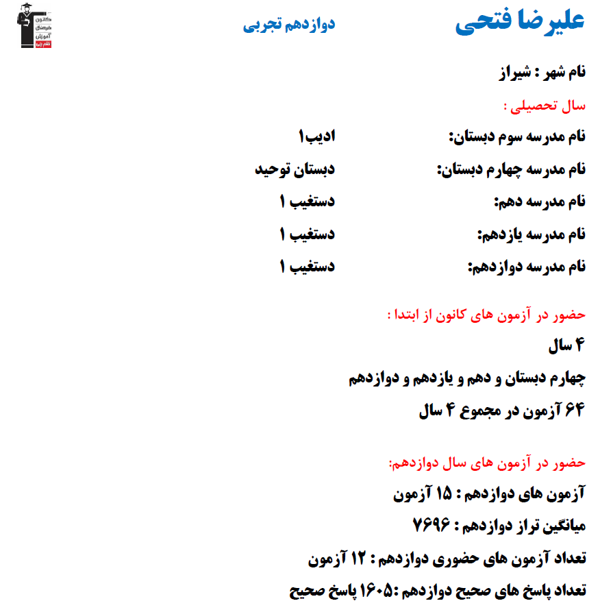 با برترهای دوازدهم تجربی ۱۴۰۴ آشنا شوید: