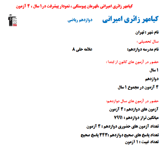 کیامهر زائری امیرانی؛نمودار پیشرفت در 1 سال،4 آزمون،343 پاسخ صحیح