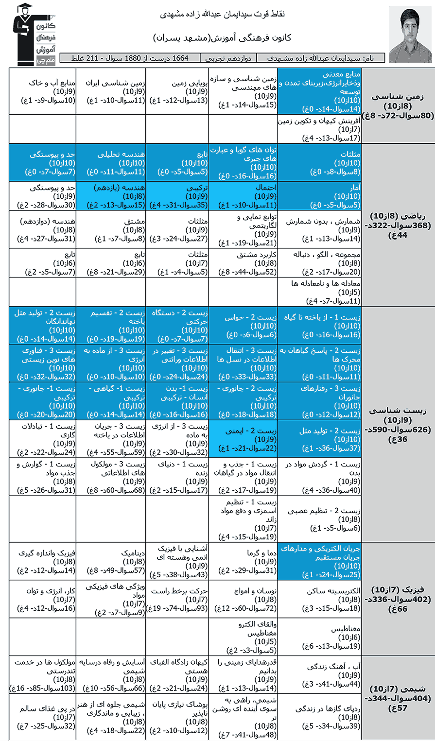 با برترهای دوازدهم تجربی ۱۴۰۴ آشنا شوید: