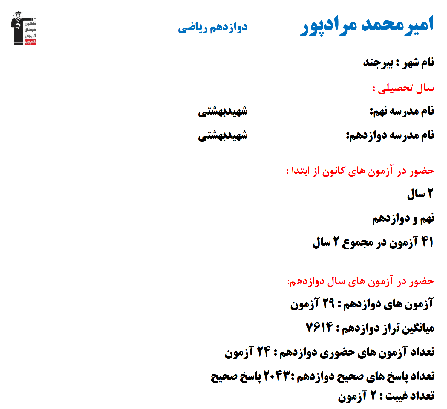 با برترهای دوازدهم ریاضی ۱۴۰۴ آشنا شوید: