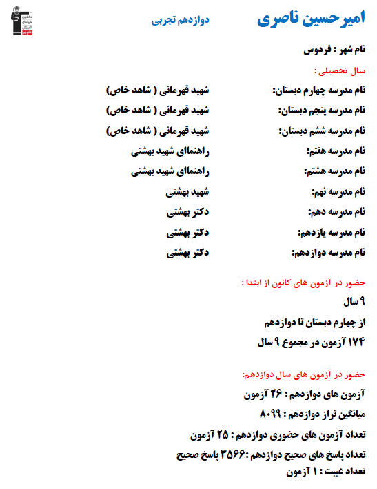 با برترهای دوازدهم تجربی ۱۴۰۴ آشنا شوید: