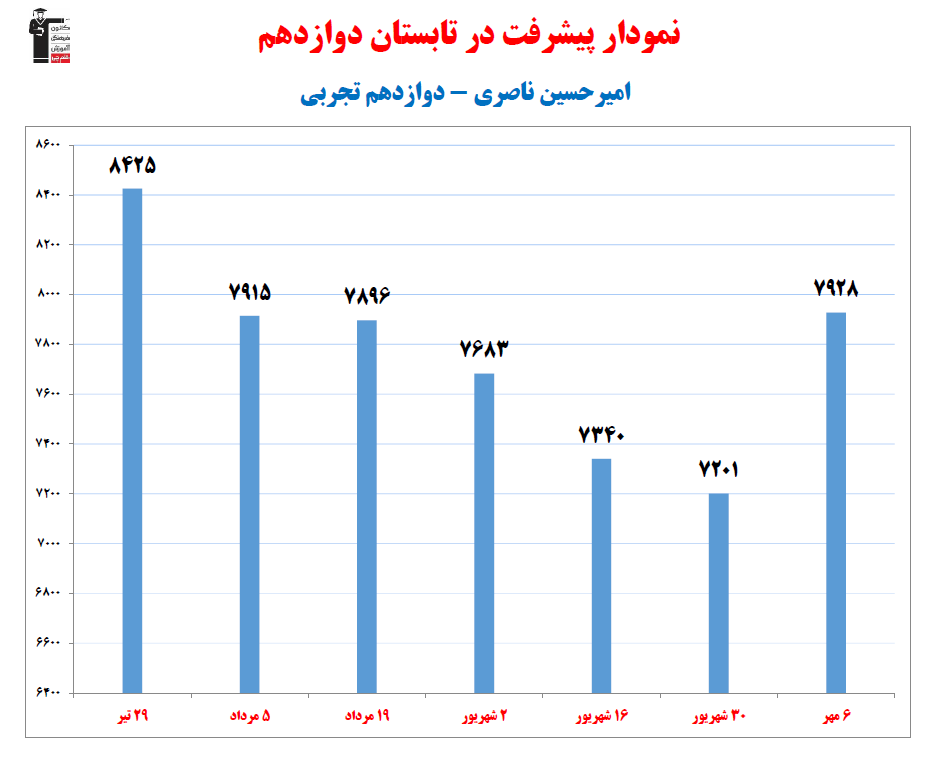 در ادامه میتوانید عملکرد درسی اميرحسين ناصري را در کانون مشاهده کنید.نمودار پیشرفت میانگین تراز در پایههای مختلف،نمودار تراز کل، عملکرد آزمونهای سال دوازدهم و شروع از تابستان و تراز آزمون های تابستان، کارنامههای مبحثی در نمودارها و تصاویر زیر قابل مشاهده است.