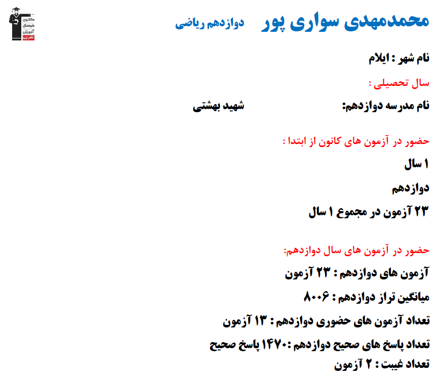 با برترهای دوازدهم ریاضی ۱۴۰۴ آشنا شوید: