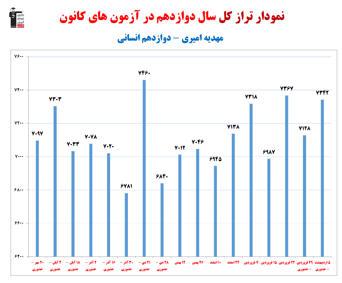 نمودار پیشرفت میانگین تراز در پایههای مختلف، نمودار تراز کل، عملکرد آزمونهای سال دوازدهم و شروع از تابستان و تراز آزمون های تابستان، کارنامههای مبحثی در نمودارها و تصاویر زیر قابل مشاهده است.