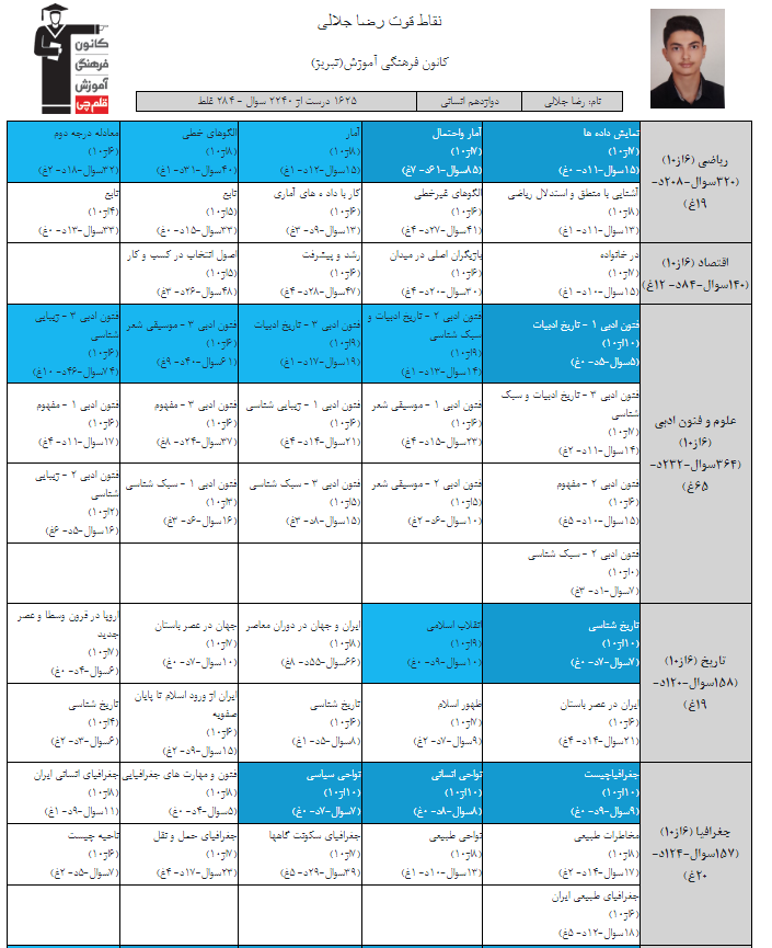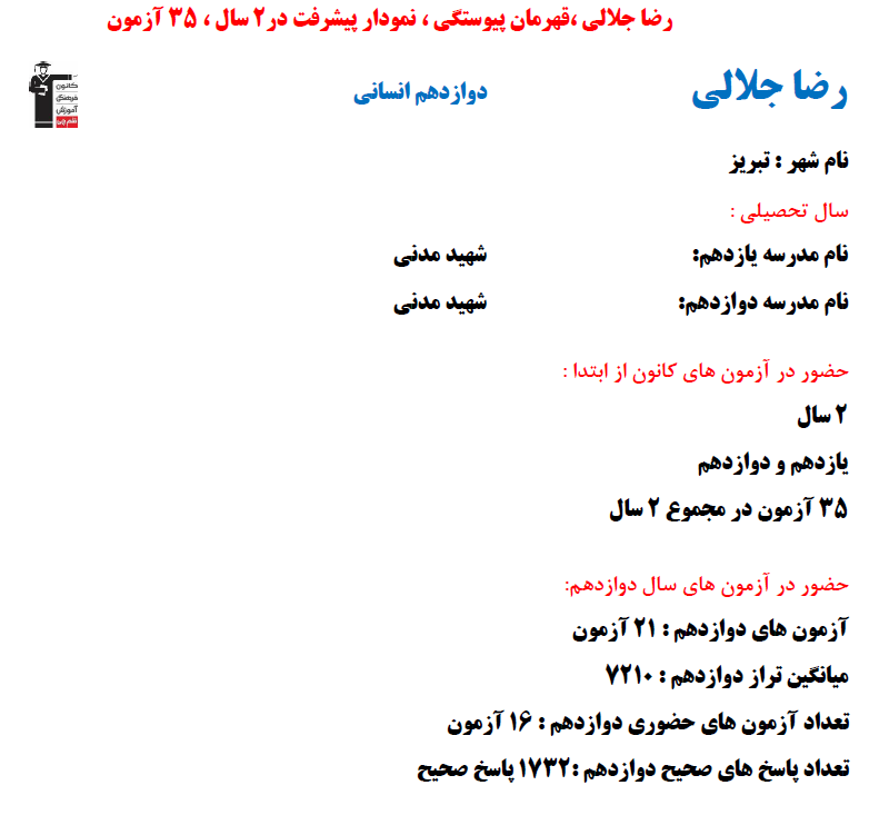 در ادامه میتوانید عملکرد درسی رضا جلالی را در کانون مشاهده کنید.