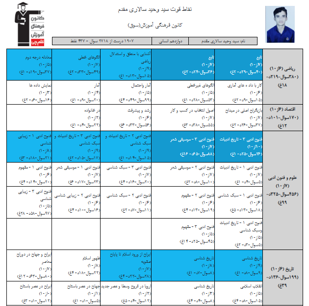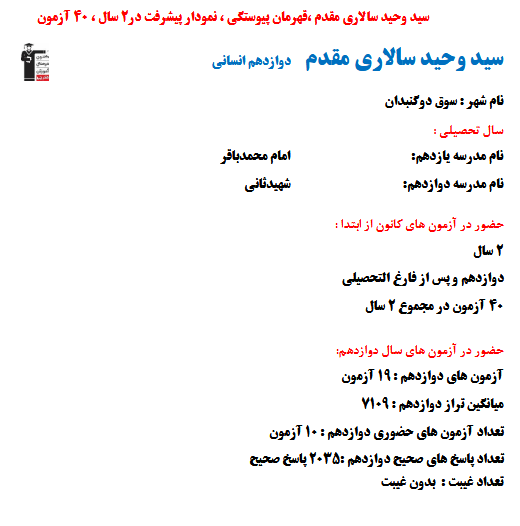 در ادامه میتوانید عملکرد درسی سید وحید سالاری مقدم را در کانون مشاهده کنید.