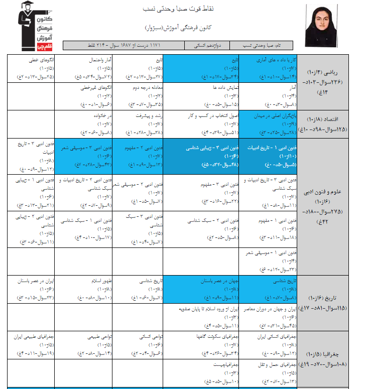 در ادامه میتوانید عملکرد درسی صبا وحدتی نسب را در کانون مشاهده کنید.