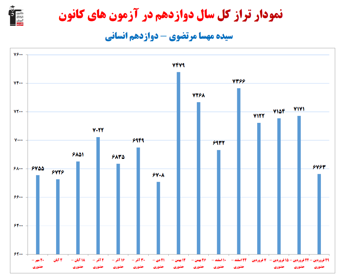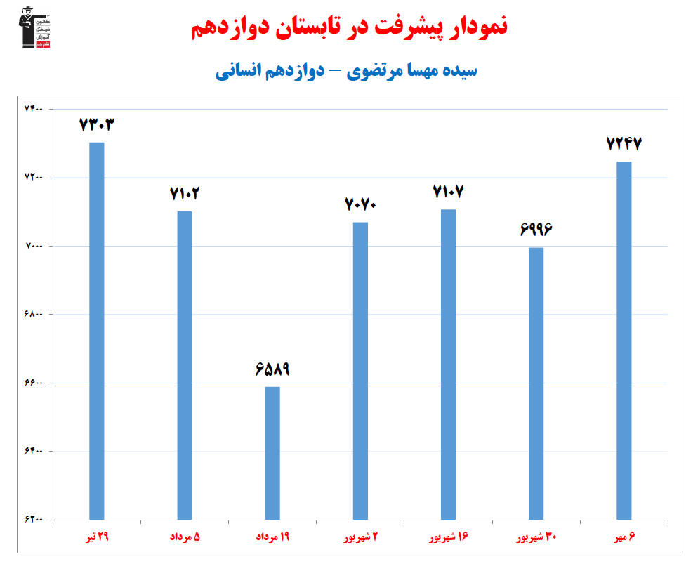 نمودار پیشرفت میانگین تراز در پایههای مختلف، نمودار تراز کل، عملکرد آزمونهای سال دوازدهم و شروع از تابستان و تراز آزمون های تابستان، کارنامههای مبحثی در نمودارها و تصاویر زیر قابل مشاهده است.