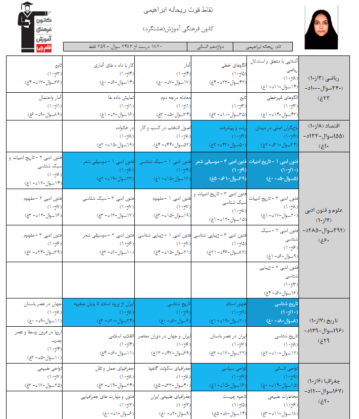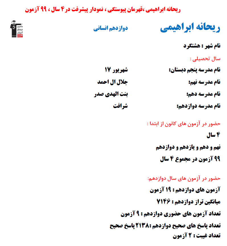 در ادامه میتوانید عملکرد درسی ریحانه ابراهیمی را در کانون مشاهده کنید.