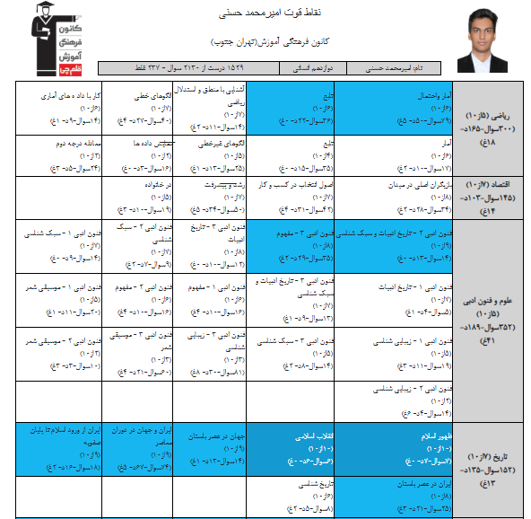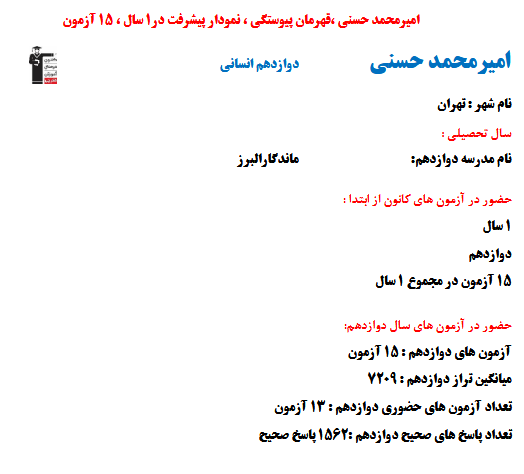 در ادامه میتوانید عملکرد درسی مهدیرضا کاشانی را در کانون مشاهده کنید.
