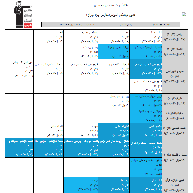 در ادامه میتوانید عملکرد درسی مهدیرضا کاشانی را در کانون مشاهده کنید.