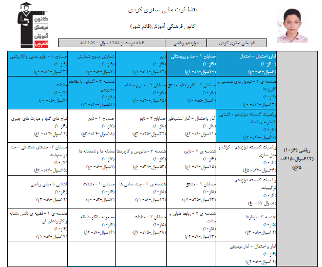 در ادامه میتوانید عملکرد درسی مهدیرضا کاشانی را در کانون مشاهده کنید.