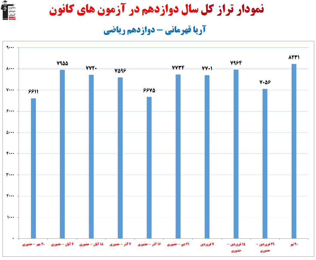 نمودار پیشرفت میانگین تراز در پایههای مختلف، نمودار تراز کل، عملکرد آزمونهای سال دوازدهم، کارنامههای مبحثی در نمودارها و تصاویر زیر قابل مشاهده است.