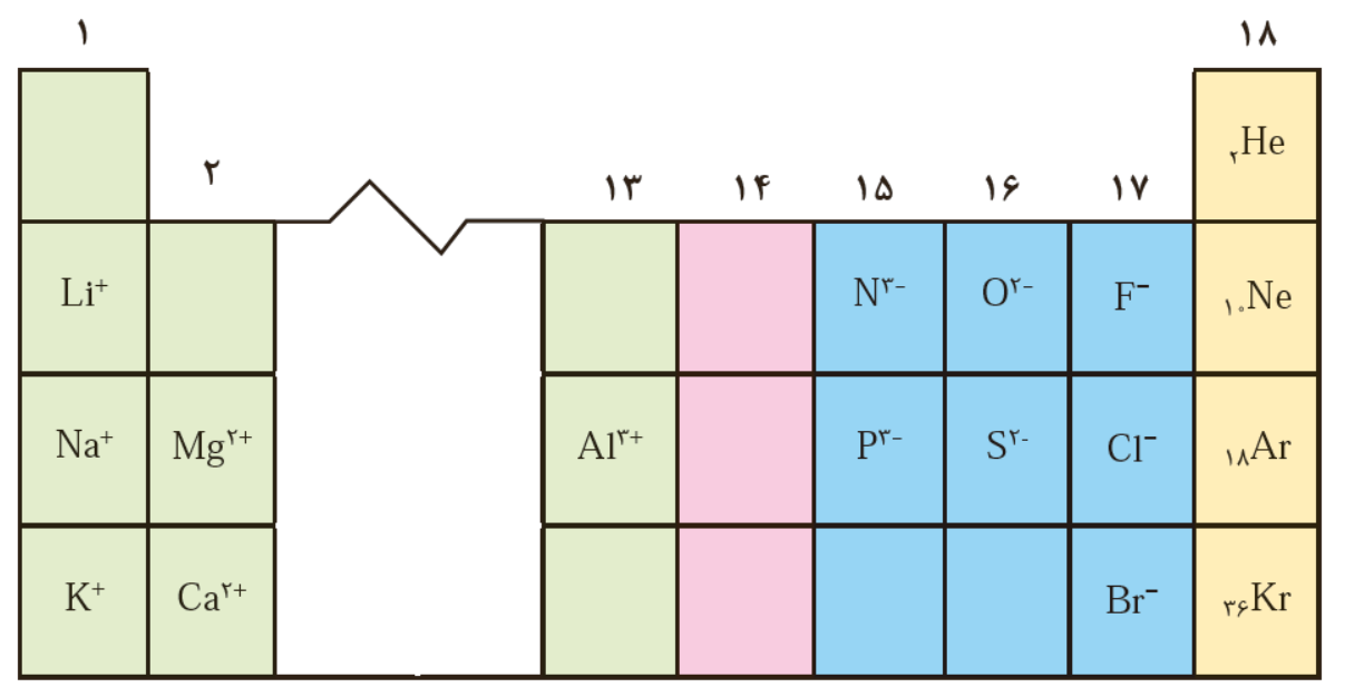 اتم عنصر های گروه 15، 16، 17 در شرایط مناسب با به دست آوردن الکترون به آنیون هایی تبدیل می شود که آرایشی همانند آرایش گاز نجیب هم دوره خود را دارد.