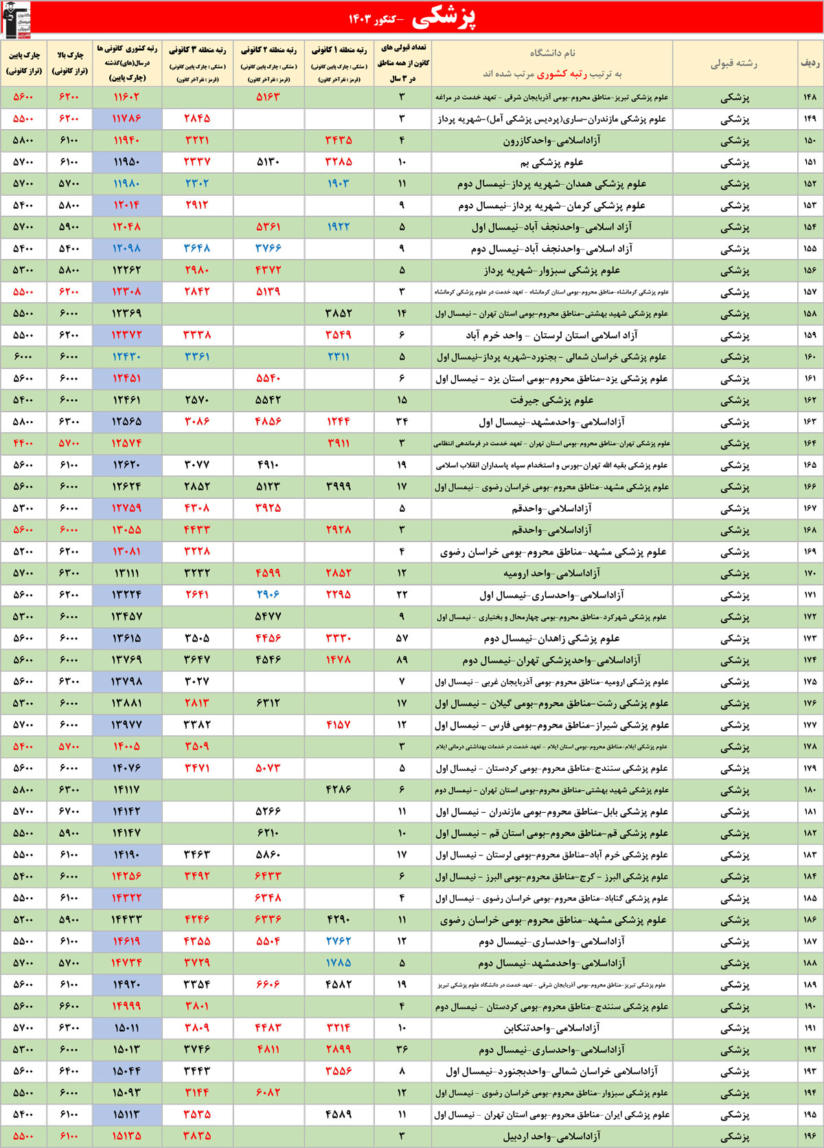 همچنین جدول سایر رشته ها به تدریج منتشر مشود.