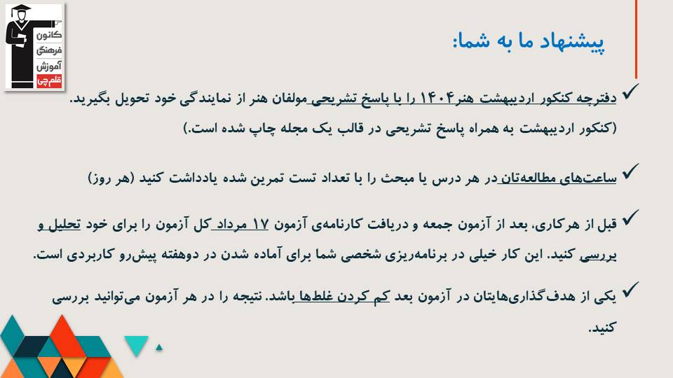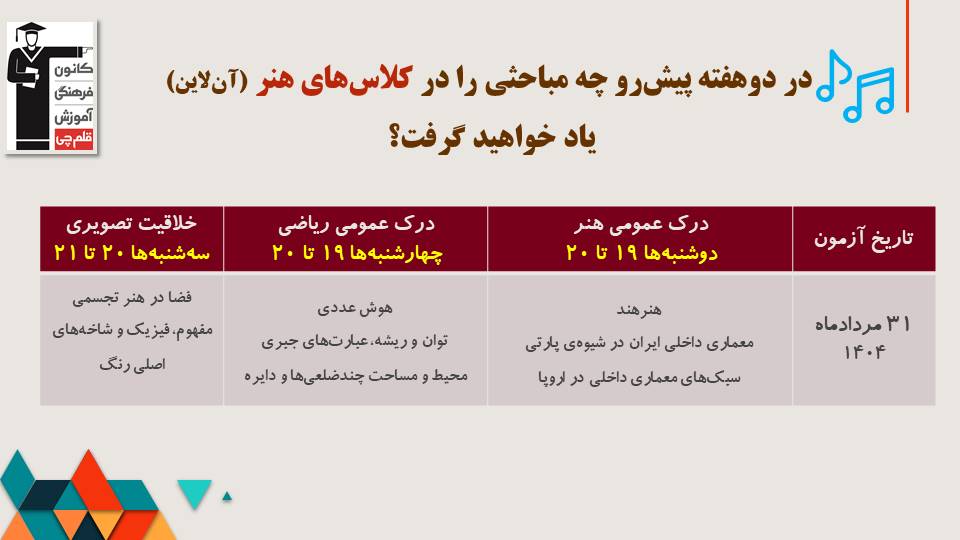 در آزمون 31 مرداد ماه 1404 هنر چه مباحثی را باید بخوانیم؟