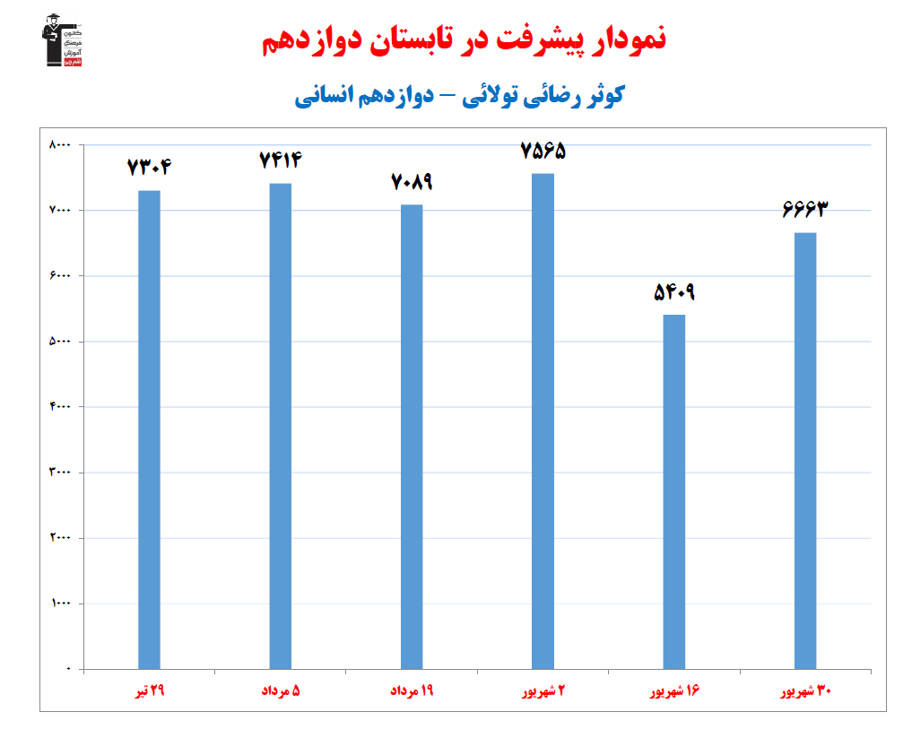 نمودار پیشرفت میانگین تراز در پایههای مختلف، نمودار تراز کل، عملکرد آزمونهای سال دوازدهم و شروع از تابستان و تراز آزمون های تابستان، کارنامههای مبحثی در نمودارها و تصاویر زیر قابل مشاهده است.