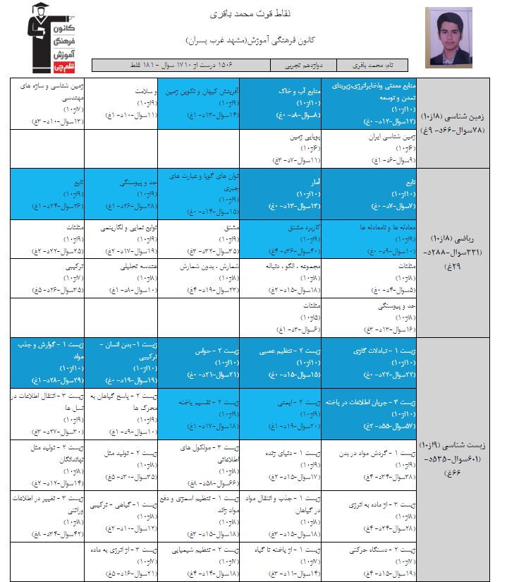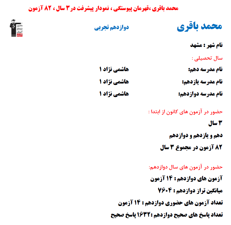 در ادامه میتوانید عملکرد درسی محمد باقری را در کانون مشاهده کنید.