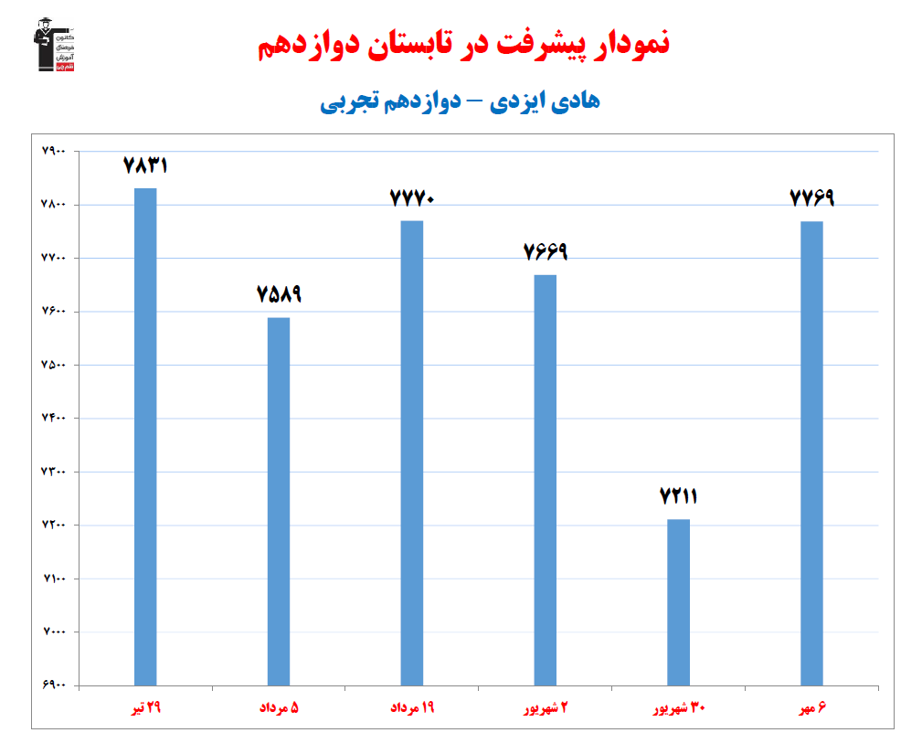 نمودار پیشرفت میانگین تراز در پایههای مختلف، نمودار تراز کل، عملکرد آزمونهای سال دوازدهم و شروع از تابستان و تراز آزمون های تابستان، کارنامههای مبحثی در نمودارها و تصاویر زیر قابل مشاهده است.