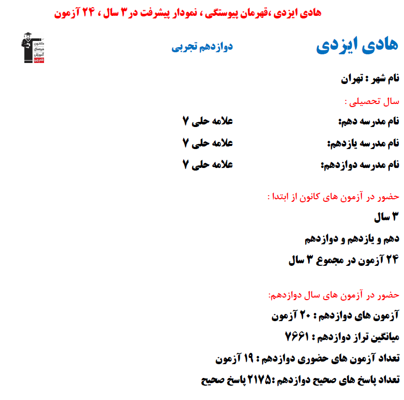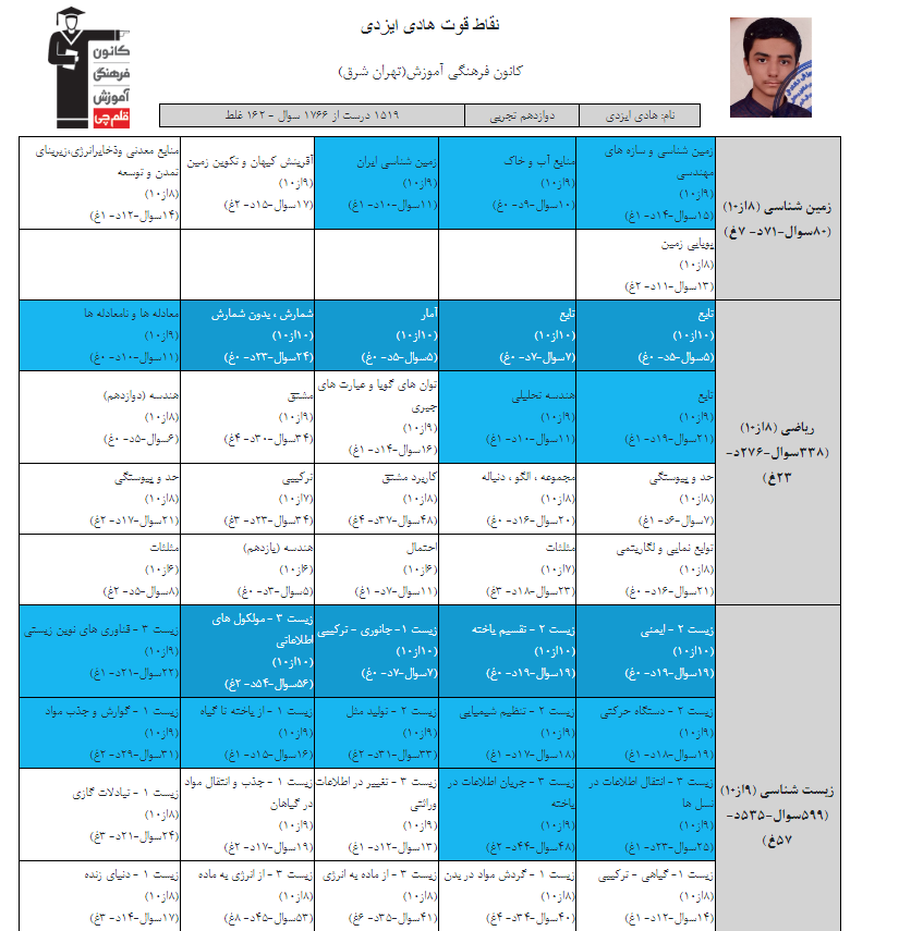 در ادامه میتوانید عملکرد درسی هادی ایزدی را در کانون مشاهده کنید.
